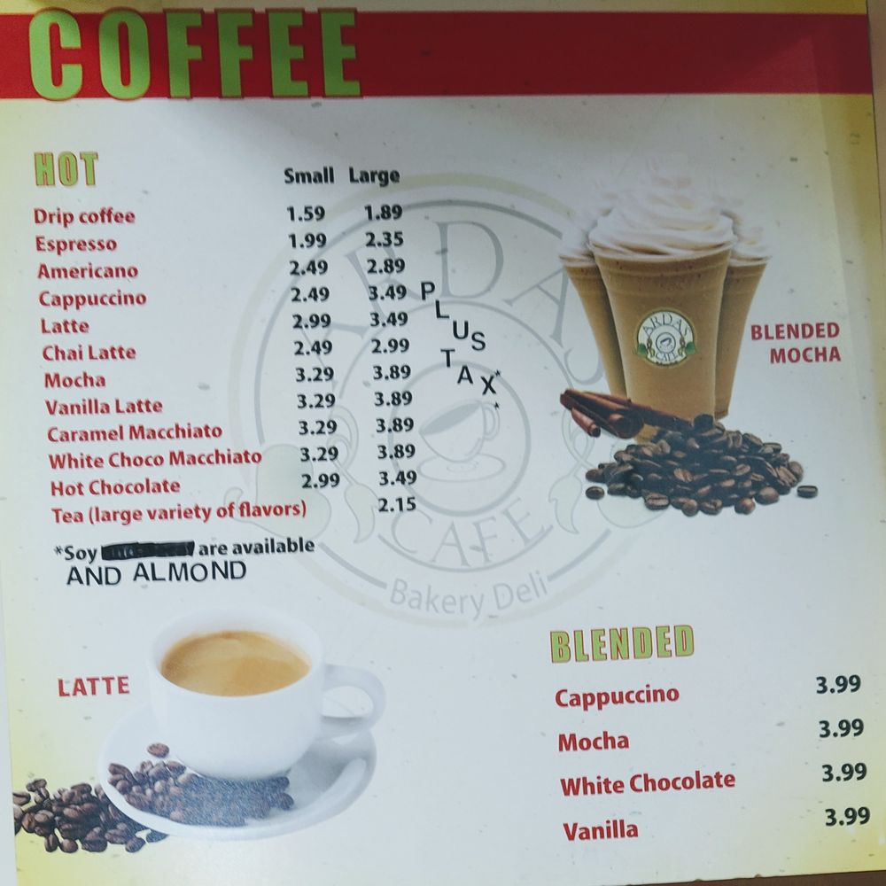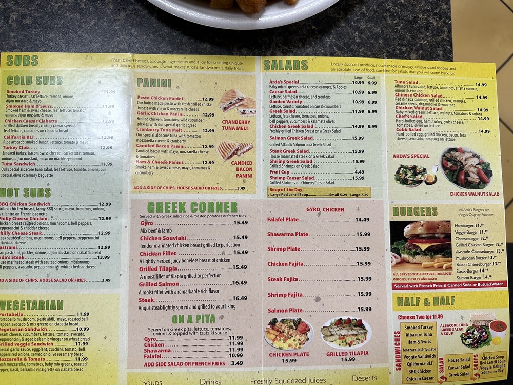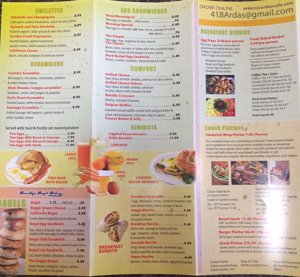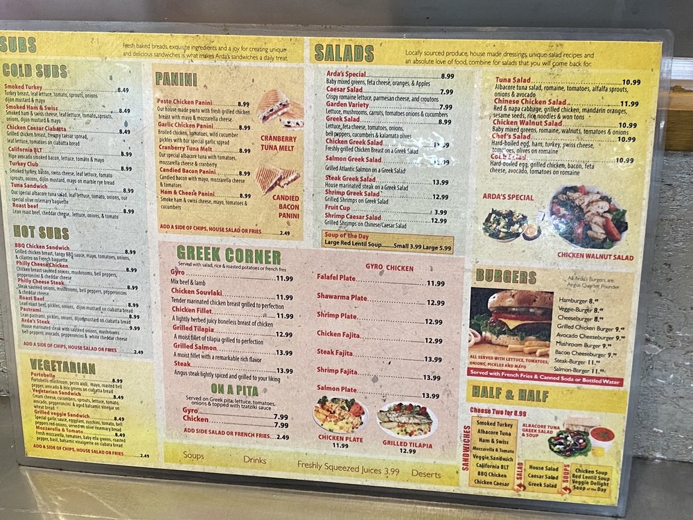 Arda's Cafe Menu